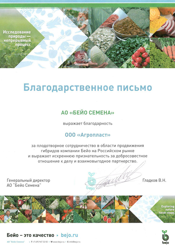 Компания «Агропласт» работает для клиентов, которые ценят профессиональный подход к исполнению заказов и высокое качество продукции. Основными направлениями развития для компании «Агропласт» являются повышение качества выпускаемой продукции и увеличение объемов производства, соответствующего мировым стандартам.
